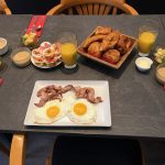 Oeuf au plat, bacon, jus d’orange, salade de fruit/yaourts