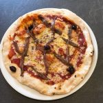 Sauce tomate, moza, anchois, olives noires, câpres, origan